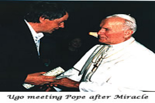 In 1990, during a pilgrimage to Rome, Ugo met Mother Teresa, who encouraged him to trust in Jesus and pray the Chaplet of Divine Mercy. Soon after, on June 19, 1990, he attended an audience with Pope John Paul II, who blessed his Divine Mercy images and urged him to surrender his suffering to Christ.